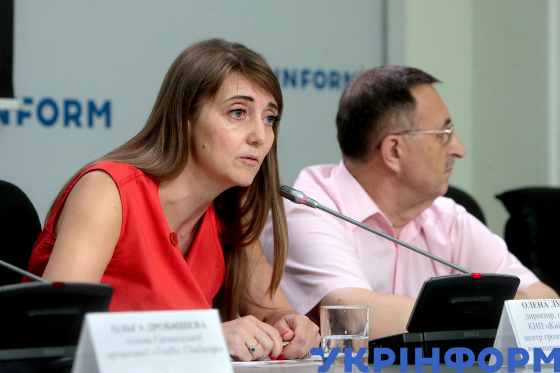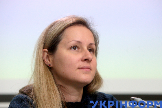 Голова Громадської організації Traffic Challenge Ольга Дробишева під час пресконференції на тему: "Чому гинуть люди на пішохідних переходах та як цьому запобігти?" в Українському національному інформаційному агентстві "Укрінформ", Київ, 29 серпня 2019 року.