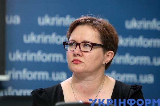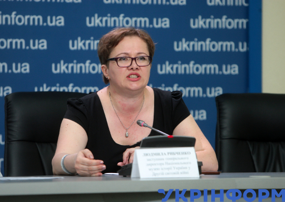 Заступниця генерального директора Національного музею історії України у Другій світовій війні Людмила Рибченко під час прес-заходу на тему: "Як Україна вшанує п’яту річницю звільнення міст сходу?" в Українському національному інформаційному агентстві "Укрінформ", Київ, 1 липня 2019 року.