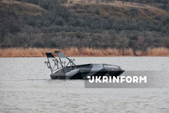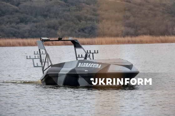 Катер-дрон Barracuda, що проходить випробування на півдні України, 30 березня 2026 року. Безекіпажний катер Barracuda - багатофункціональний надводний дрон, розроблений бійцями однойменного підрозділу 40-ї окремої бригади берегової оборони, що входить до складу 30-го корпусу морської піхоти ВМС ЗСУ. Катер обладнаний сучасною системою трекінгу та дистанційним керуванням, а також елементами штучного інтелекту.