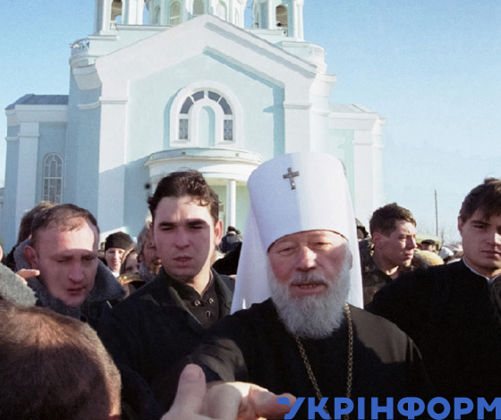 Митрополит Київський і всієї України, предстоятель Православної церкви України Володимир під час відкриття Свято-Миколаївського храму в Приморському районі, Маріуполь, Донецька область, 10 грудня 2001 року. Фото Бориса Дембицького.