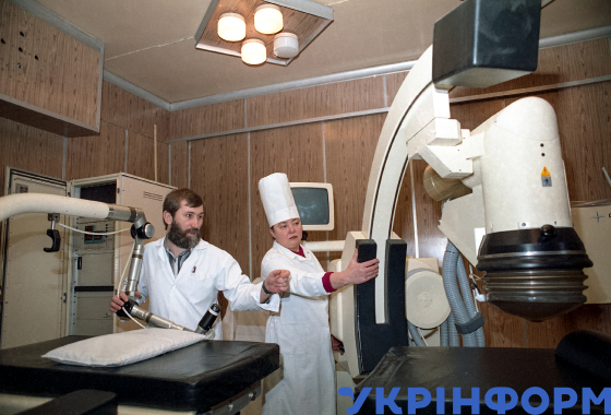Медики готуються до операції в новому нефрологічному відділенні, відкритому в лікарні №1, Маріуполь, Донецька область, лютий 1999 року. Фото Бориса Дембицького.