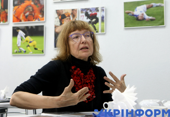 Відома дослідниця історії Києва Ольга Друг під час пресконференції на тему: "Почесні громадяни Києва: Відкриття виставки та презентація книги" в Українському національному інформаційному агентстві "Укрінформ", Київ, 23 травня 2019 року.