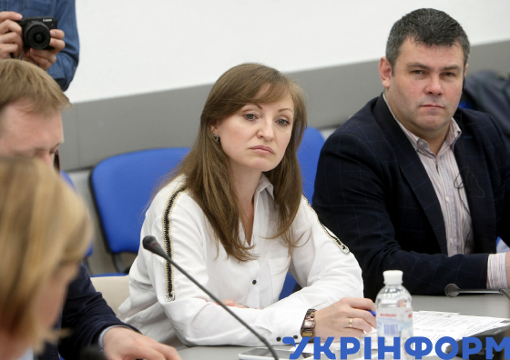 Виконавча директорка Інституту економічних досліджень та політичних консультацій, керівниця Центру досліджень сучасного суспільства Оксана Кузяків під час засідання "круглого столу" на тему: "Як забезпечити ефективну громадську участь у впровадженні поглибленої та всеохоплюючої зони вільної торгівлі: дискусія та обмін досвідом" в Українському національному інформаційному агентстві "Укрінформ", Київ, 21 травня 2019 року.
