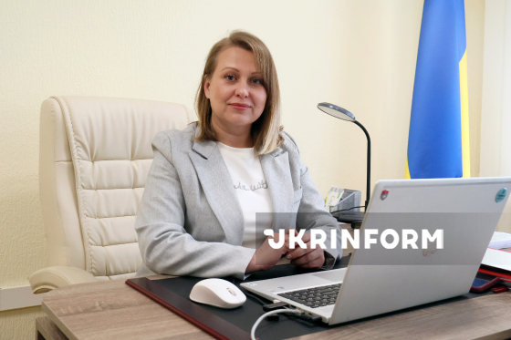 Голова Національної комісії зі стандартів державної мови Юлія Чернобров дає інтерв’ю кореспонденту Українського національного інформаційного агентства “Укрінформ”, Київ, 2 квітня 2026 року.