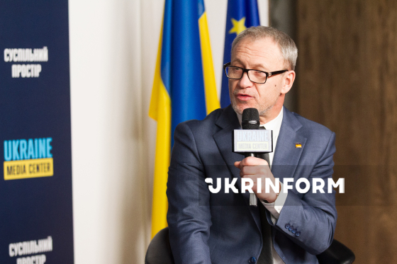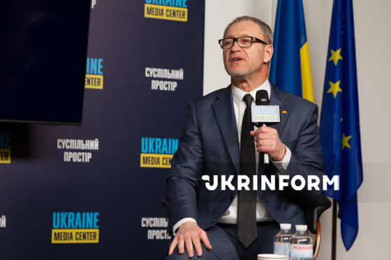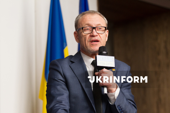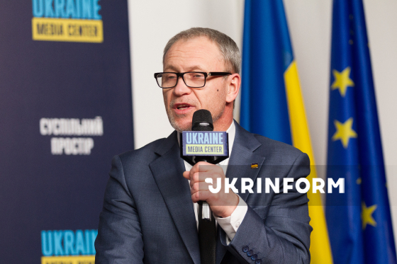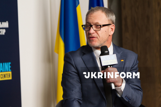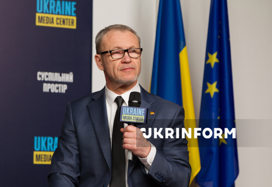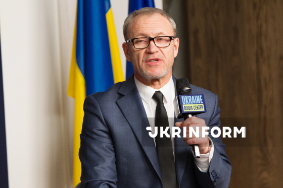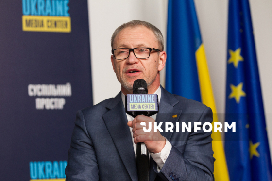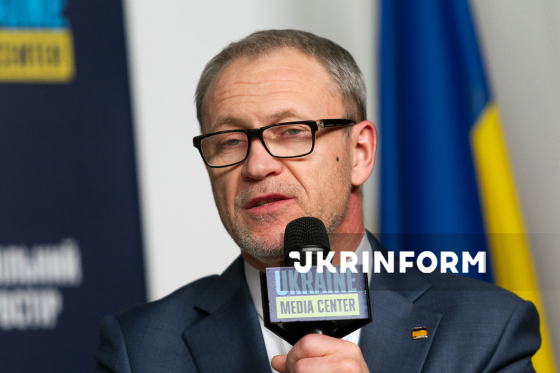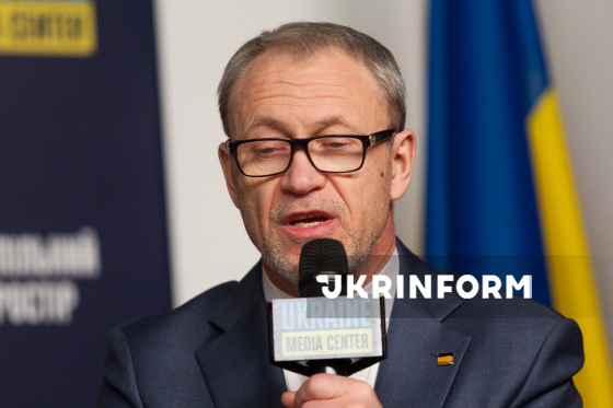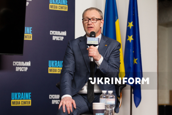 Голова Держатомрегулювання – головний державний інспектор з ядерної та радіаційної безпеки України Олег Коріков бере участь у брифінгу “Ситуація на АЕС після ворожих ударів” у Медіацентрі Україна, Київ, 12 лютого 2026 року.