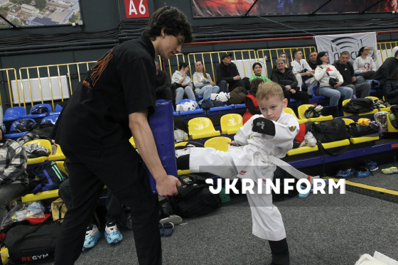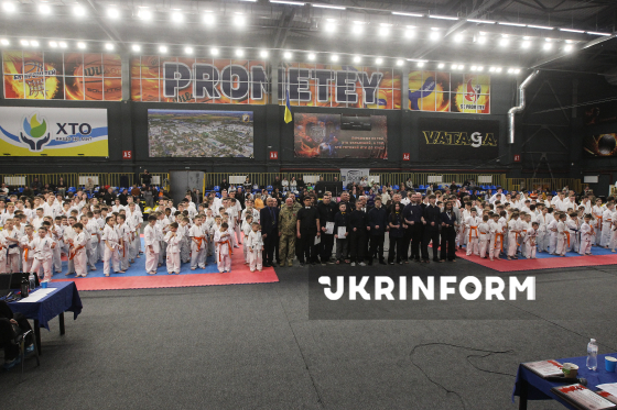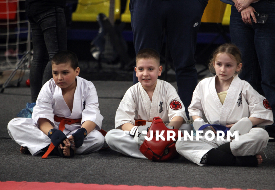 Юні спортсмени беруть участь у чемпіонаті України з кіокушин карате у спортивному комплексі “Олімпійські резерви”, Дніпро, 4 квітня 2026 року. Понад 450 спортсменів із 12 областей України змагалися у розділах “Куміте” та “Ката”. Участь у змаганнях взяли діти від шести років і досвідчені спортсмени.