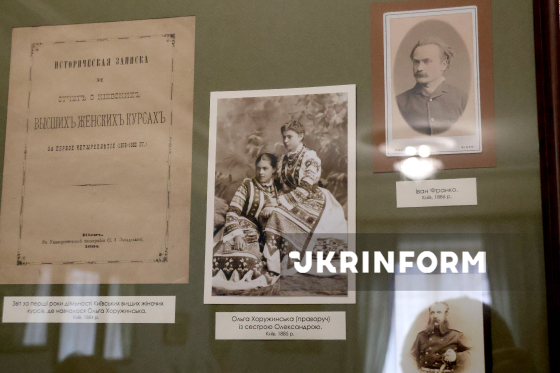 Фотографія майбутньої дружини українського письменника Івана Франка Ольги Хоружинської в молоді роки експонується на виставці "Іван Франко і Київ", що висвітлює київський період життя, творчості та громадської діяльності Каменяра, у Меморіальному будинку-музеї Лесі Українки Музею видатних діячів української культури, Київ, 1 квітня 2026 року. Серед експонатів представлено унікальні матеріали про особисте життя письменника, його творчі контакти з київською інтелігенцією, а також документи, що висвітлюють долю його дітей - Тараса, Петра та Анни Франків.
