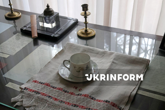 Експонати постійної експозиції "Іван Франко і Київ", що висвітлює київський період життя, творчості та громадської діяльності українського письменника Івана Франка, у Меморіальному будинку-музеї Лесі Українки, який входить до комплексу Музею видатних діячів української культури, Київ, 1 квітня 2026 року. Серед експонатів представлено унікальні матеріали про особисте життя письменника, його творчі контакти з київською інтелігенцією, а також документи, що висвітлюють долю його дітей - Тараса, Петра та Анни Франків.