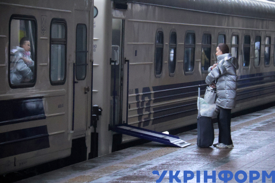 Пасажирка з валізою заходить у новий поїзд Transcarpathia №9/10 сполученням Київ – Будапешт, що відправляється у перший рейс зі станції “Київ-Пасажирський”, Київ, 15 грудня 2024 року.