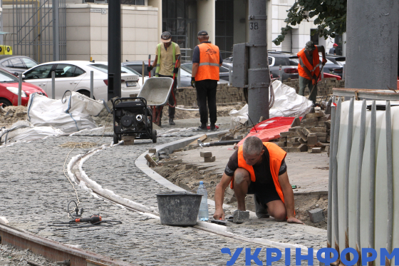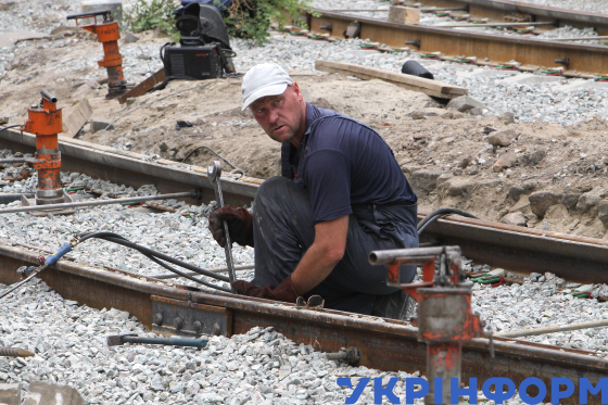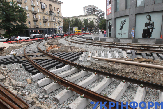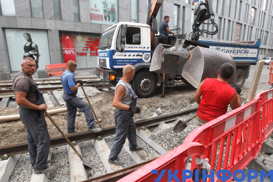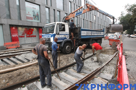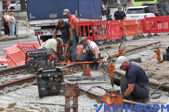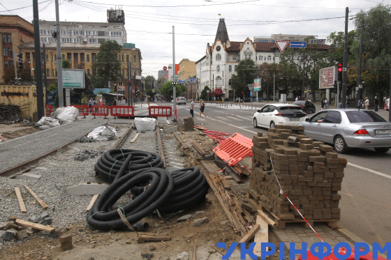 Дорожники ремонтують трамвайні колії на вулиці Володимира Мономаха, Дніпро, 4 серпня 2025 року.