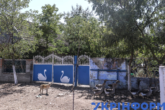 Гуси у загоні на території ферми Олега Пономаренка, який займається тваринництвом, у селищі Овідіополь, де залишилося жити лише три родини, Одеський район, Одеська область, 21 серпня 2025 року.