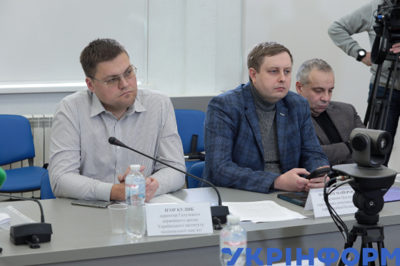 Директор Галузевого державного архіву Українського інституту національної пам’яті Ігор Кулик під час засідання "круглого столу" на тему: "Презентація соціологічного опитування та наукового дослідження про генерала УПА "Справа Шухевича"", Київ, 27 жовтня 2023 року.