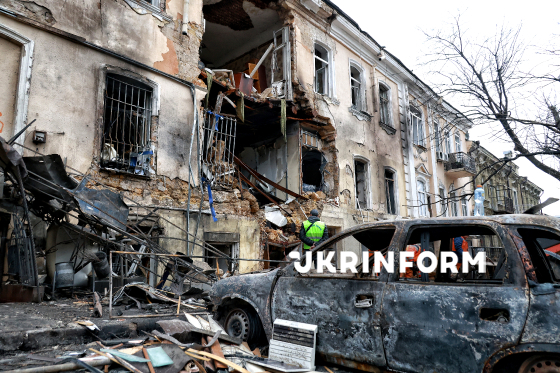 Частково зруйнований внаслідок російської атаки ударними БпЛА триповерховий будинок в Одесі, 19 березня 2026 року. У ніч на 19 березня російська армія вкотре обстріляла місто ударними дронами. Частково зруйновано дво- і триповерхові будинки, пошкоджено квартири у 21- та 25-поверхівках, понівечено понад 20 автомобілів. Внаслідок обстрілу постраждали четверо цивільних, двох із них – госпіталізували.