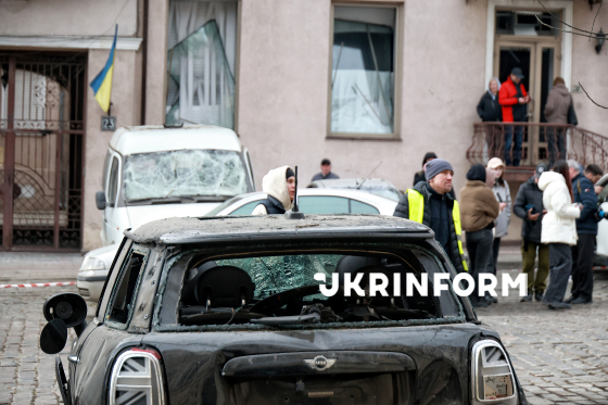 Розбите вибуховою хвилею заднє вікно автомобіля, припаркованого біля зруйнованого внаслідок російської атаки ударними БпЛА у ніч на 19 березня триповерхового будинку, Одеса, 19 березня 2026 року. Також частково зруйновано двоповерховий будинок, пошкоджено квартири у 21- та 25-поверхівках, понівечено понад 20 автомобілів. Внаслідок обстрілу постраждали четверо цивільних, двох із них – госпіталізували.