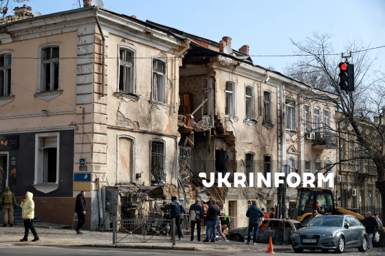 Частково зруйнований внаслідок російської атаки ударними БпЛА триповерховий будинок в Одесі, 19 березня 2026 року. У ніч на 19 березня російська армія вкотре обстріляла місто ударними дронами. Частково зруйновано дво- і триповерхові будинки, пошкоджено квартири у 21- та 25-поверхівках, понівечено понад 20 автомобілів. Внаслідок обстрілу постраждали четверо цивільних, двох із них – госпіталізували.