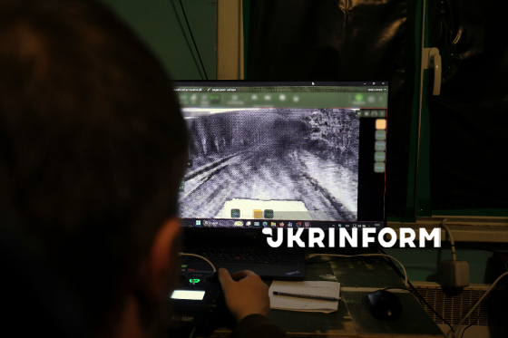 Військовослужбовець 57-ї окремої мотопіхотної бригади ЗСУ імені кошового отамана Костя Гордієнка, оператор наземного роботизованого комплексу (НРК) керує технікою, Вовчанський напрямок, 8 січня 2026 року.