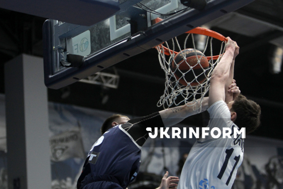 Гравець БК “Харківські Соколи” Олексій Соловйов кидає м`яч у баскетбольне кільце під час першого матчу 1/4 фіналу чемпіонату України з баскетболу серед команд Суперліги між БК “Харківські Соколи” (Харків) і БК “Ніко-Баскет” (Миколаїв), що завершився з рахунком 89:81 на користь харківської команди, у СК “Шинник”, Дніпро, 4 квітня 2026 року.