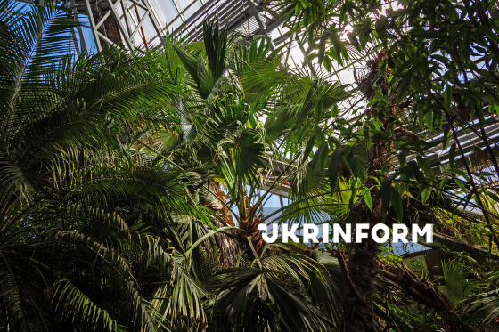 Тропічні рослини в оранжереї Національного ботанічного саду імені М. М. Гришка, Київ, 11 березня 2026 року. Через перебої з опаленням, спричинені російськими атаками на енергосистему України, у січні температура в експозиційних оранжереях опускалася до критичних позначок – -3°C (при нормі +15°C). Найбільше постраждали тропічні родини ароїдних та орхідних, проте видову різноманітність вдалося зберегти повністю. Київська колекція налічує понад 4 тисячі видів і з 1999 року має статус Національного надбання України.
