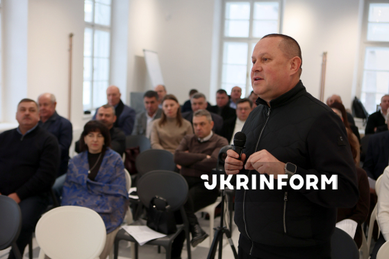 Голова Надвірнянської ТГ Зіновій Андрійович виступає на брифінгу голів прикарпатських громад, організованого з ініціативи Івано-Франківського регіонального відділення Асоціації міст України у межах муніципального діалогу, присвяченого проблематиці фінансової спроможності територіальних громад у 2026 році з урахуванням законодавчих змін, урядових рішень та позиції обласної влади, Івано-Франківськ, 23 січня 2026 року.