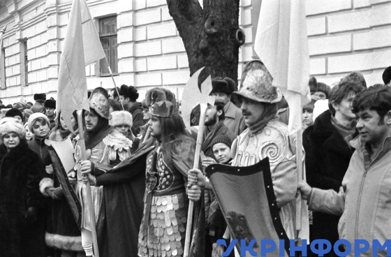Злука проголошення Акта Злуки річниця Злуки Злука УНР і ЗУНР 71-ша річниця проголошення Акта Злуки День Соборності України живий ланцюг прапор Львів 1990 рік Володимир Песляк архів Укрінформу