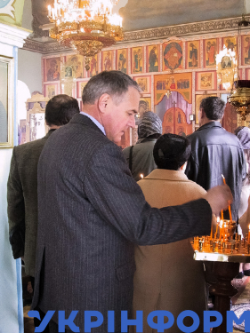 Заступник голови облдержадміністрації, учасник ліквідації наслідків аварії на ЧАЕС Віталій Примак під час панахиди пам’яті жертв чорнобильської трагедії у Свято-Архангело-Михайлівському жіночому монастирі, Одеса, 24 квітня 2001 року. Фото Олександра Сєрого.