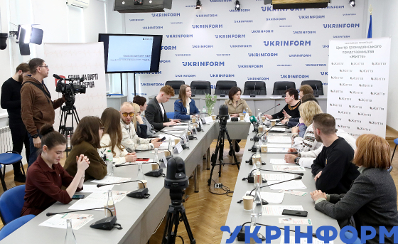Учасники експертного обговорення на тему: "Результати інформаційної кампанії "Стань на варті свого серця". Чи знають українці, як запобігти серцево-судинним захворюванням?" в Українському національному інформаційному агентстві "Укрінформ", Київ, 29 лютого 2024 року.