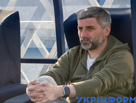 Головний тренер київського ФК "Оболонь" Сергій Шищенко під час матчу 25-го туру чемпіонату України з футболу серед команд Прем’єр-ліги проти ФК "Динамо", що завершився перемогою господарів поля з рахунком 3:0, на стадіоні імені Валерія Лобановського, Київ, 18 квітня 2025 року.