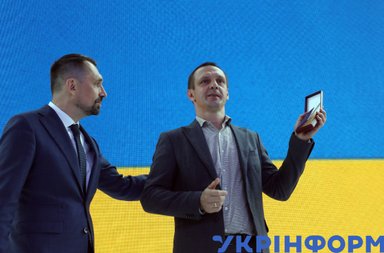 Міністр культури та стратегічних комунікацій Микола Точицький (ліворуч) та перший заступник генерального директора Національого заповідника "Софія Київська" Вадим Кириленко під час форуму в межах Культурної платформи "Україна відкрита світу", Київ, 13 вересня 2024 року.