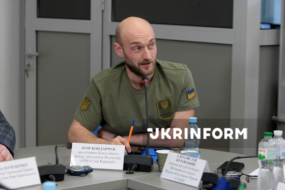 Представник БФ "Батальйон Волонтер" та ГО "Стоп корупції" Ігор Бондарчук бере участь у міжнародній конференції на тему: "Сильне громадянське суспільство - шлях до побудови справедливого миру в Європі" в Українському національному інформаційному агентстві "Укрінформ", Київ, 23 лютого 2026 року.