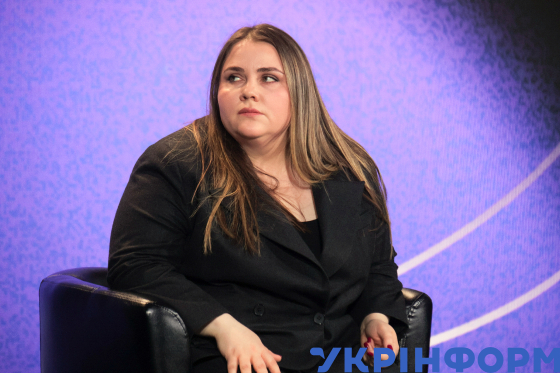 Заступниця міністра оборони України Катерина Черногоренко під час дискусійної панелі “Космос як стратегічний ресурс та цивілізаційна ознака сучасної держави” на міжнародному форумі Space For Ukraine, організованому Міністерством оборони України, Київ, 29 березня 2025 року.