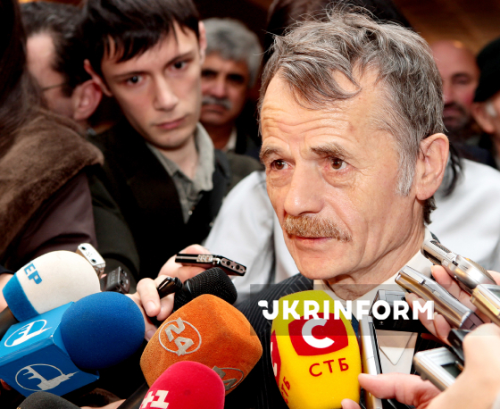 Голова Меджлісу, народний депутат України Мустафа Джемілєв відповідає на питання журналістів у дні першої сесії Курултаю кримськотатарського народу 5-го скликання, на якій розглядаються питання "Про суспільно-політичну ситуацію в Україні і Криму та головні завдання органів національного самоврядування кримськотатарського народу", Сімферополь, АР Крим, 7 грудня 2007 року. Фото Арвідаса Шеметаса.