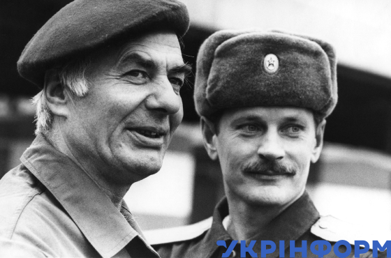 Досвідчений інженер Євген Павкін (ліворуч) із водієм, прапорщиком Олександром Борком, який у складній радіаційній ситуації за зміну на своєму МАЗі робив до десяти рейсів до аварійного четвертого енергоблока ЧАЕС, Чорнобиль, Київська область, грудень 1986 року. Фото Володимира Репіка.