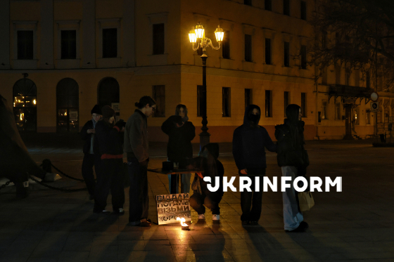 Молодь проводить флешмоб, Одеса, 13 грудня 2025 року. Після масованої російської атаки на енергетичні об’єкти 13 грудня більша частина Одеси залишилася без електроенергії, водопостачання та опалення. Магазини, лікарні і решта важливих об’єктів життєзабезпечення наразі працюють на альтернативних джерелах енергії. Незважаючи на серйозні пошкодження інфраструктури, місто продовжує жити і працювати.