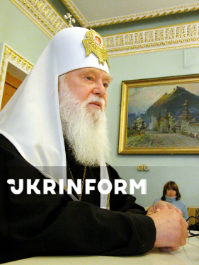 Предстоятель Української православної церкви Київського патріархату (УПЦ КП), Патріарх Київський і всієї Руси-України Філарет бере участь у пресконференції на тему: "Ювілейні урочистості з нагоди 1700-річчя з дня мученицької кончини святої великомучениці Варвари", Київ, 19 жовтня 2006 року. Фото Івана Тихого.