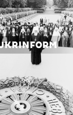 Екзарх України, митрополит Київський та Галицький Філарет (на першому плані), священнослужителі поклали квіти до могили Невідомого солдата в парку Вічної Слави під час хресної ходи з нагоди 1000-ліття хрещення Руси, Київ, 15 червня 1988 року. Фото Володимира Самохоцького.