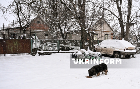 Правоохоронці підгодовують собак в одному з прифронтових населених пунктів під Гуляйполем, Запорізька область, 16 січня 2026 року. Через смертельну небезпеку та близькість фронту в районі Гуляйполя гуманітарну допомогу цивільним доставляє лише поліція. Правоохоронці привозять самотнім людям хліб і воду, а також проводять евакуацію мешканців у безпечні місця. Поза увагою не залишають і покинутих тварин — під час рейдів поліцейські підгодовують собак та котів у порожніх селах.