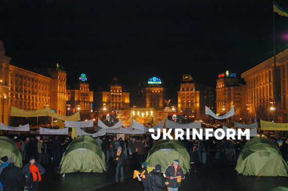 Прихильники кандидата в Президенти України від опозиції Віктора Ющенка, протестуючи проти фальсифікації результатів другого туру президентських виборів на користь провладного кандидата Віктора Януковича, в наметах на Майдані Незалежності вирішують провести паралельний підрахунок голосів виборців, Київ, 21 листопада 2004 року. Фото Олега Маркевича.