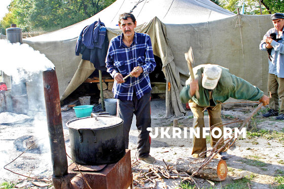 Кримські татари поблизу села Чистеньке, відстоюючи свої права на рідну землю, встановили наметове містечко, у якому облаштовують свій побут та ведуть будівництво тимчасового житла, поки влада ігнорує їхні інтереси, пов’язані із поверненням на історичну батьківщину, Сімферопольський район, АР Крим, 21 вересня 2006 року. Фото Арвідаса Шеметаса.