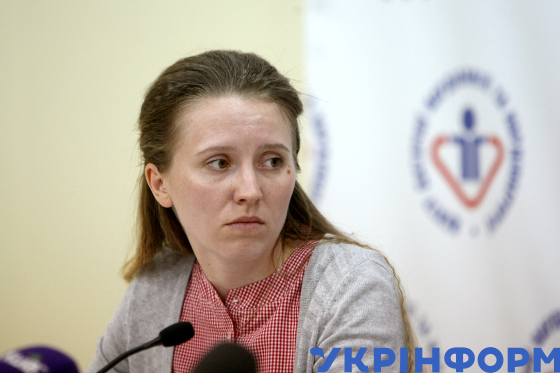 Організаторка 27-го "Пробігу під каштанами" Галина Філімонова під час пресконференції напередодні щорічної спортивно-благодійної акції "Пробіг під каштанами" з метою залучення благодійників до збору коштів на потреби Центру дитячої кардіології та кардіохірургії МОЗ України в приміщенні медичного закладу, Київ, 13 травня 2019 року.