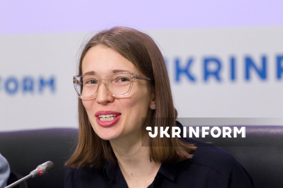 Директорка Центру демократії та верховенства права Олеся Холопік бере участь у презентації результатів Національного тесту з медіаграмотності 2025 в Українському національному інформаційному агентстві "Укрінформ", Київ, 28 листопада 2025 року.