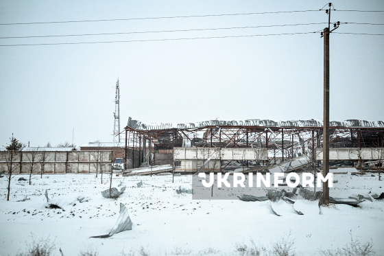 Зруйнована внаслідок російських обстрілів будівля сільгосппідприємства у районі міста Гуляйполя, Запорізька область, 16 січня 2026 року. Ситуація на Гуляйпільському напрямку залишається напруженою вже кілька тижнів. Російські війська намагаються захопити Гуляйполе. Щодня відбуваються десятки боєзіткнень як у самому місті, так і в навколишніх населених пунктах.
