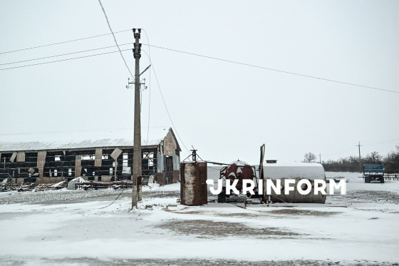 Зруйнована внаслідок російських обстрілів будівля сільгосппідприємства у районі міста Гуляйполя, Запорізька область, 16 січня 2026 року. Ситуація на Гуляйпільському напрямку залишається напруженою вже кілька тижнів. Російські війська намагаються захопити Гуляйполе. Щодня відбуваються десятки боєзіткнень як у самому місті, так і в навколишніх населених пунктах.
