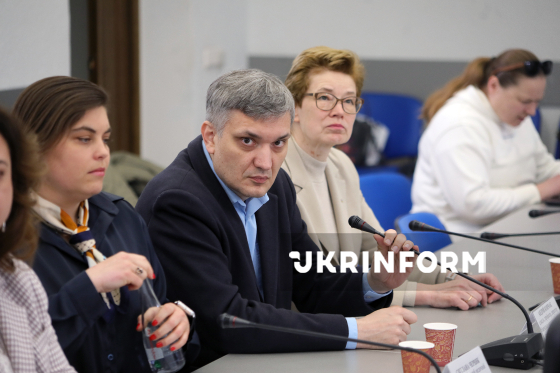 Професор, директор Навчально-наукового інституту стоматології Національного медичного університету імені О. О. Богомольця Андрій Копчак (у центрі) бере участь у засіданні "круглого столу" на тему: "Здорова усмішка – здоров’я українців" до Всесвітнього дня здоров’я ротової порожнини в Українському національному інформаційному агентстві "Укрінформ", Київ, 20 березня 2026 року.