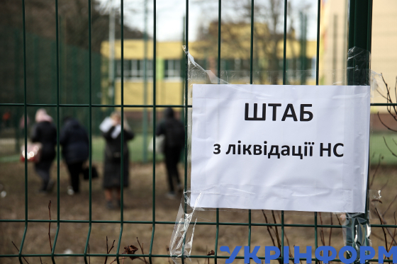 Напис з інформацією про розміщення у приміщенні місцевої школи №286 штабу допомоги постраждалим мешканцям розташованого поруч багатоповерхового житлового будинку, в який під час ранкової атаки влучили уламки російської ракети, Київ, 7 лютого 2024 року.
