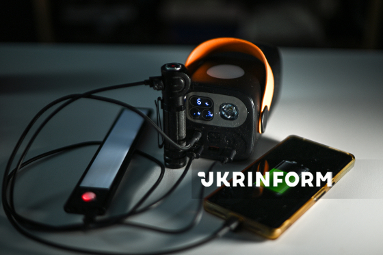 Смартфон заряджається від портативної мобільної батареї, Київ, 11 січня 2026 року. Через регулярні обстріли критичної інфраструктури України запроваджено відключення світла. Активно використовуються газові балони, туристичні пальники для обігріву та приготування їжі, портативні джерела (повербанки, зарядні станції, генератори) для зв’язку, а також ліхтарики та свічки для освітлення.
