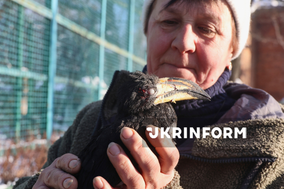 Працівниця Фельдман-Екопарку тримає птаха, врятованого після російського удару керованою авіабомбою по території Фельдман-Екопарку, Харківська область, 1 січня 2026 року. Внаслідок російського удару керованою авіабомбою по території приватного екопарку поранено волонтерку та левів, загинули екзотичні птахи (папуги, фазани), зруйновано зимові приміщення для птахів та хижаків. Через близькість до фронту екопарк неодноразовано потерпав від російських атак.