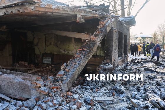 Зруйновані внаслідок російського обстрілу КАБом вольєри для птахів у Фельдман-Екопарку, Харківська область, 1 січня 2026 року. Внаслідок російського удару керованою авіабомбою по території приватного екопарку поранено волонтерку та левів, загинули екзотичні птахи (папуги, фазани), зруйновано зимові приміщення для птахів та хижаків. Через близькість до фронту екопарк неодноразовано потерпав від російських атак.