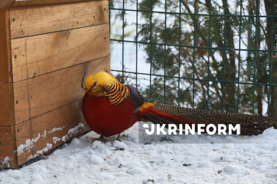Золотий фазан, врятований після російського удару керованою авіабомбою по території Фельдман-Екопарку, Харківська область, 1 січня 2026 року. Внаслідок російського удару керованою авіабомбою по території приватного екопарку поранено волонтерку та левів, загинули екзотичні птахи (папуги, фазани), зруйновано зимові приміщення для птахів та хижаків. Через близькість до фронту екопарк неодноразовано потерпав від російських атак.