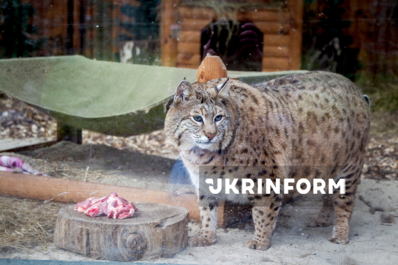 тварина хижа тварина рись фауна хижак Степан зайва вага вольєра зоопарк Київський зоопарк Київ м’ясо годівля