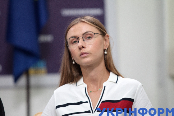 Аналітикиня Центру досліджень ГО “Детектор Медіа” Леся Бідочко під час другої сесії на тему: “Роль держави, громадського сектору та медіа в протидії дезінформації” у межах експертного обговорення “Ефективність протидії російській дезінформації в Україні в умовах повномасштабної війни”, Київ, 2 серпня 2023 року.